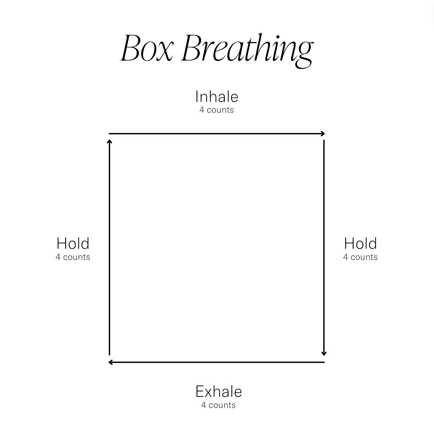 Styles such as box-breathing or coherent breath focus on a set time duration assigned to the breath including the inhales, exhales, and any use of breath holds. For instance with box-breathing, the breath pattern follows a rhythm where the amount of time dedicated to the inhale, hold, exhale and final hold are equal (also pictured in the diagram below):